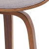 This mid-century style counter stool is crafted with a curved bentwood frame and legs in a walnut finish, and a light grey fabric seat and back with piping details. The contoured back will envelope your body with plush elegance and the 360° swivel will ensure you can carry on a conversation in any direction. The chrome-finished footrest is the perfect finishing touch.