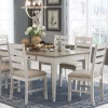 Set the scene for coastal chic or modern farmhouse living with this 7-piece dining room set. The clean-lined, simply striking table doubles the charm with its warm brown plank-effect top and grayish white base. Two convenient side drawers and a lift-top bin offer abundant storage options. Six upholstered, ladderback chairs sport a grayish white finish with rubbed through effect for a timeworn appeal.