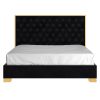 Bring a high-end look to your bedroom with this velvet and stainless steel upholstered bed. Everything from the button tufting on the plush upholstery to the polished metal legs screams style! Perfect for a master bedroom that you will fall in love with.
