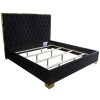 - Diamond patterned button tufting on headboard with polished stainless steel frame