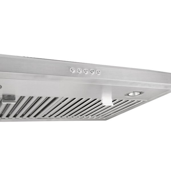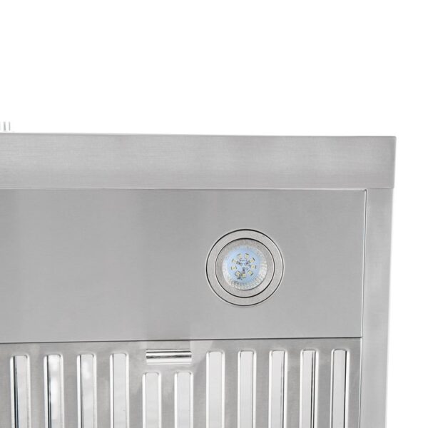 This 30” stainless steel wide under cabinet range hood is a durable companion for your kitchen. Featuring an ultra strong motor, mechanical buttons, two baffle filters, and two LED lights, this unit will take your cooking experience to a new level.