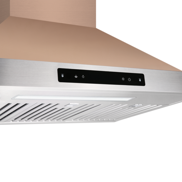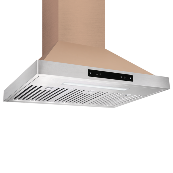 This 30’’/36” wide stainless steel/black stainless steel/gold stainless steel wall-mounted range hood is a durable companion for your kitchen. Featuring an ultra strong motor, touch screen panel, two baffle filters, and a long LED light, this unit will take your cooking experience to a new level.