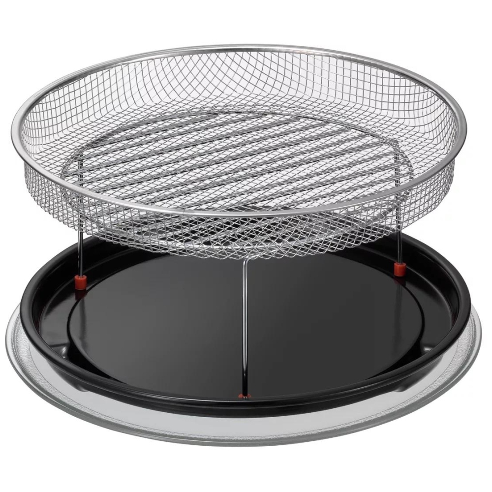 | Included Accessories | Round glass turntable, round wire rack, round enamel tray, air‑fry basket |