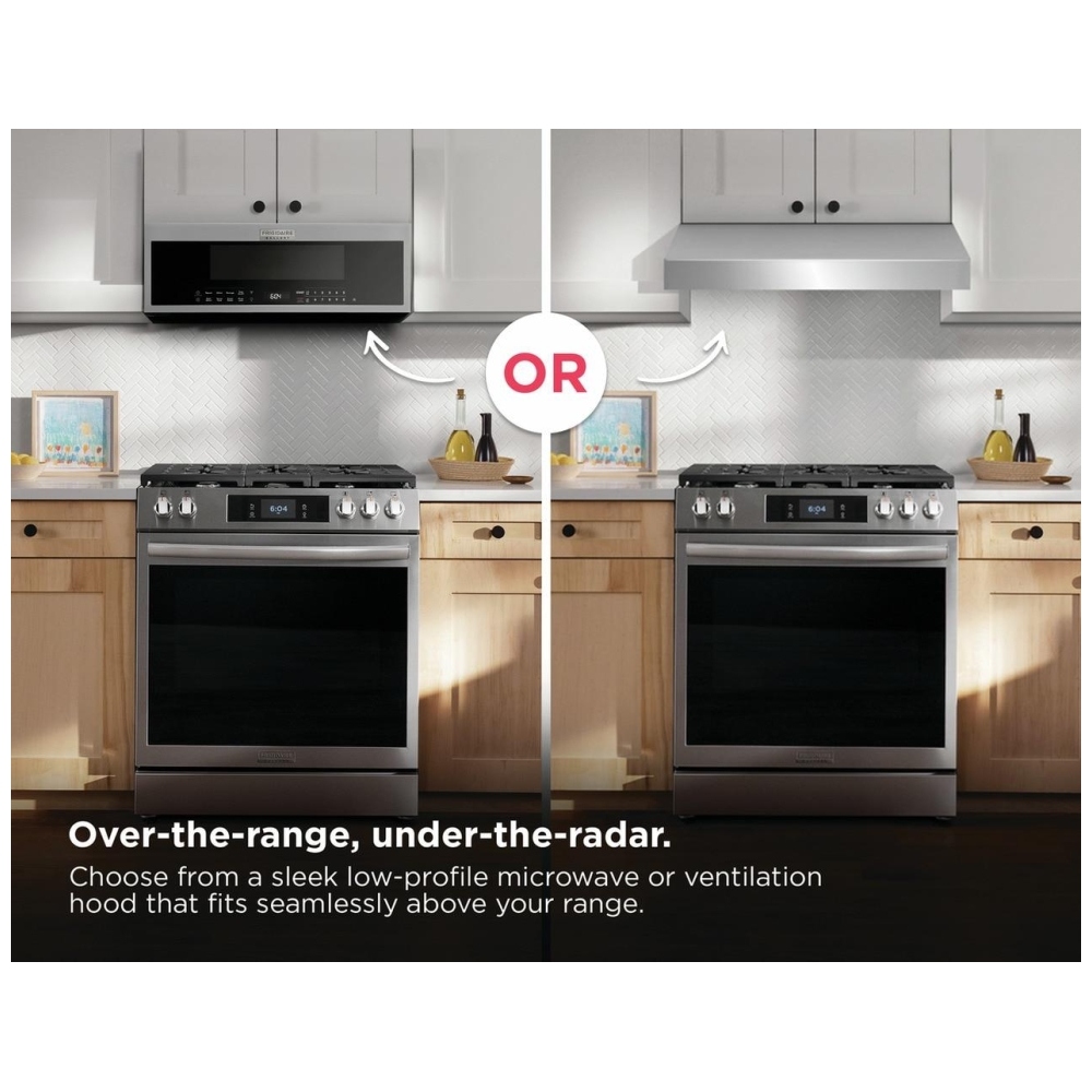 Daily use feels refined and intuitive thanks to the Dual Open Door design: you can either tap the touch icon when your hands are full or pull on the discreet hidden handle for a more traditional feel. Inside, the Effortless Clean™ interior surface helps spills wipe away quickly, while bright LED lighting clearly illuminates both the spacious cavity and your cooktop below. Finished in Smudge‑Proof® stainless steel, the Frigidaire GMOS1266AF resists fingerprints and smudges, keeping your kitchen looking polished with minimal upkeep. With its combination of smart sensor technology, premium air filtration, powerful ventilation, and ultra‑slim profile, this microwave offers a feature set that stands out from many standard over‑the‑range models, making it a smart upgrade for busy, design‑conscious households.