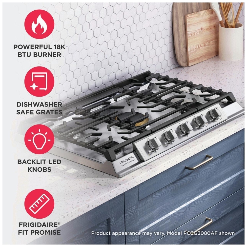 • Frigidaire® Fit Promise – guarantees your new 30″ Frigidaire Professional gas cooktop will fit your existing countertop cutout of the same width and configuration, or Frigidaire will reimburse eligible cabinet modification costs (via mail‑in rebate).