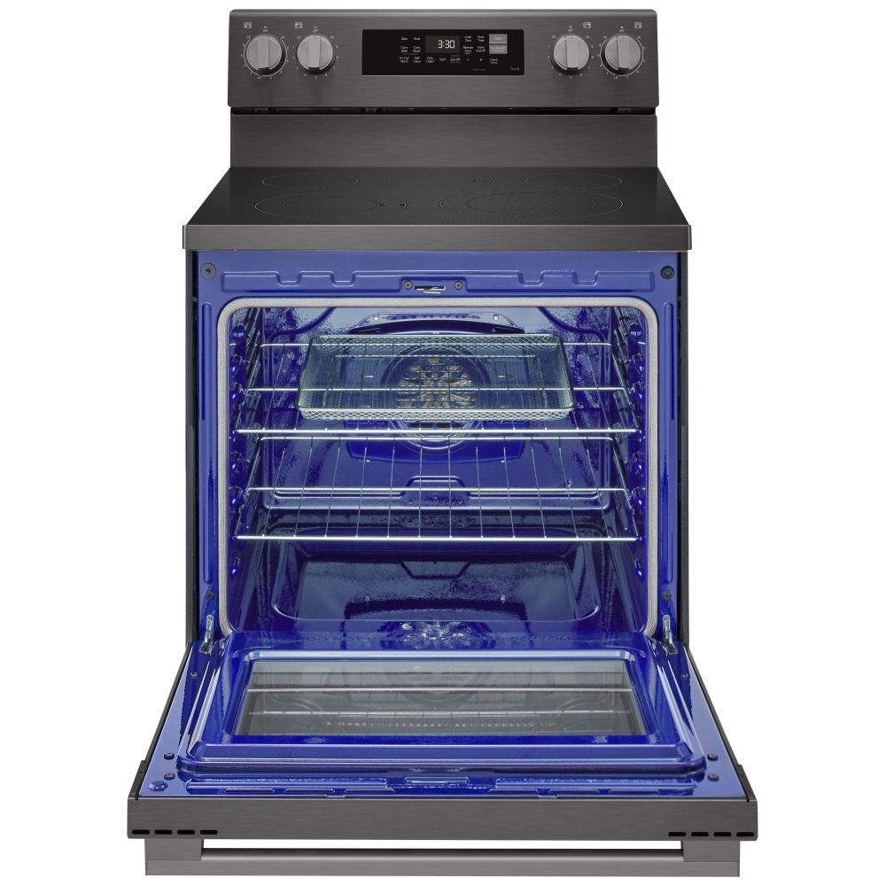 6.3 cu. ft. Capacity, 30 inch Exterior Width, Convection, 5 Burners, Storage Drawer, Air Fry, Self Clean, 3,200 W Highest Element, Black Stainless Steel colour, EasyClean®, Probake Convection®, ThinQ® Technology, UltraHeat™ Element, WideView™