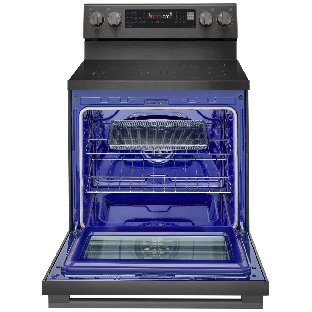 6.3 cu. ft. Capacity, 30 inch Exterior Width, Convection, 5 Burners, Storage Drawer, Air Fry, Self Clean, 3,200 W Highest Element, Black Stainless Steel colour, EasyClean®, InstaView® Window, Probake Convection®, ThinQ® Technology, UltraHeat™ Element, WideView™