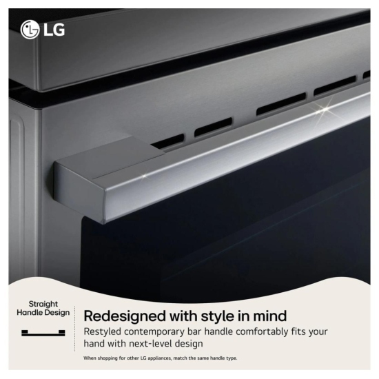 • New handle bar design – modern, substantial handle style that coordinates with other LG appliances.