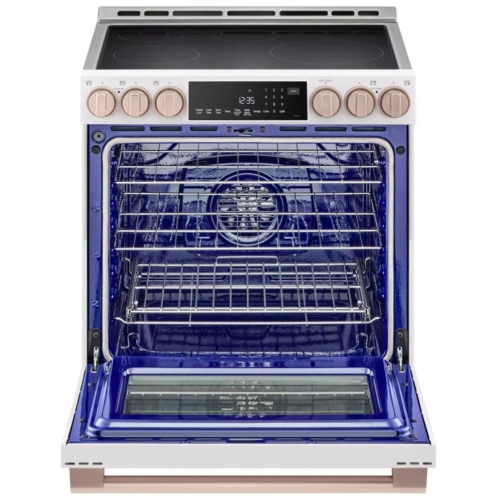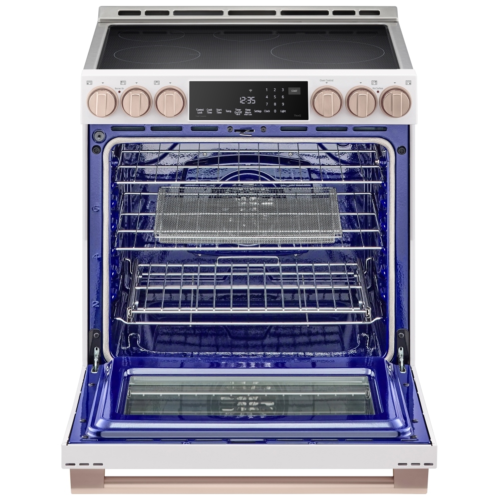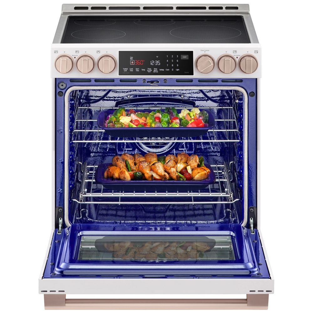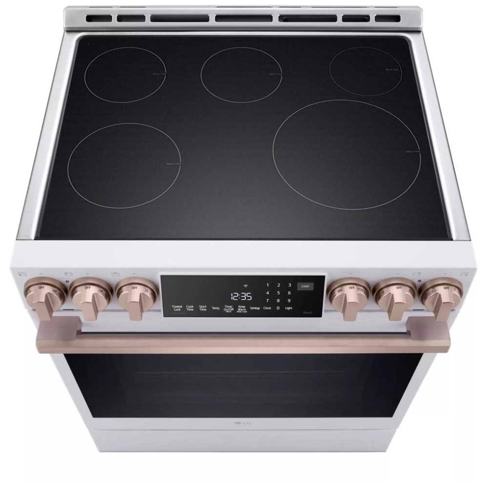 • LG ThinQ® smart connectivity – connects the range to Wi‑Fi so you can monitor and control oven functions, receive notifications, and use voice control with compatible assistants.