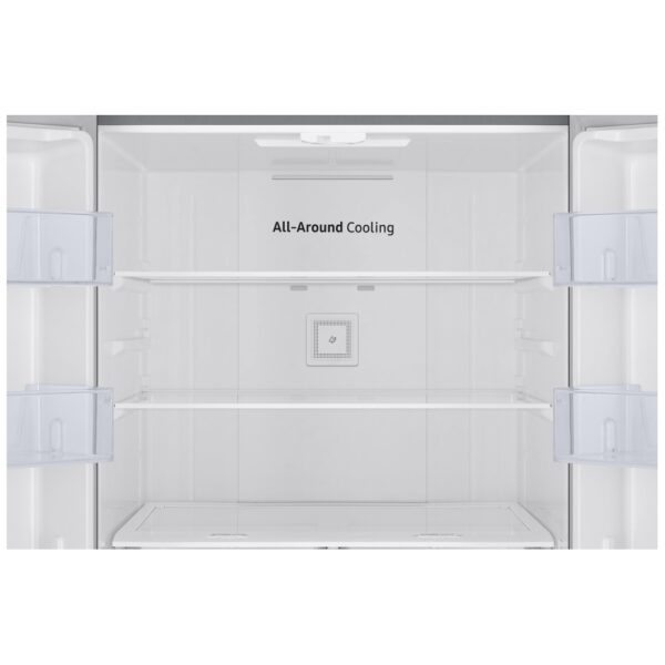All-Around Cooling is a Samsung exclusive feature that ensures that the temperature is evenly cooled throughout the entire fridge. The cooling system circulates cool air through strategically placed vents, which prevents any hot or cold spots. This means that your food will stay at the optimal temperature and will not spoil. With this feature, you can rest assured knowing that all of your food is being adequately cooled.