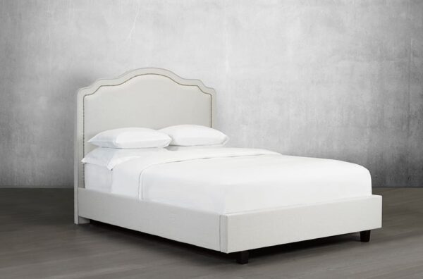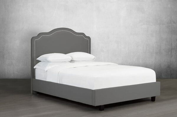 This headboard exudes elegant style with its gently arched, scalloped design and hand-applied nailhead trim. With a vast selection of beautiful linen-style options available, you can create a look you’ll love for many years to come. Canadian made, hand built to order.
