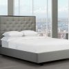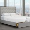 Style and sophistication. This headboard will make an impact in any bedroom with bold, deep button tufting and clean, straight lines. A black wood trim adds a level of sophistication. Available as a headboard, headboard and bed, and headboard, bed and drawer.