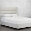 Featuring lofty tufted panels without buttons, dimples or grid patterns, this modern headboard is comfortable to lean on at any angle. Upholstered all the way to the floor, it makes narrow rooms appear wider, while the upholstered wings add a level of sophistication. Canadian made, hand built to order.