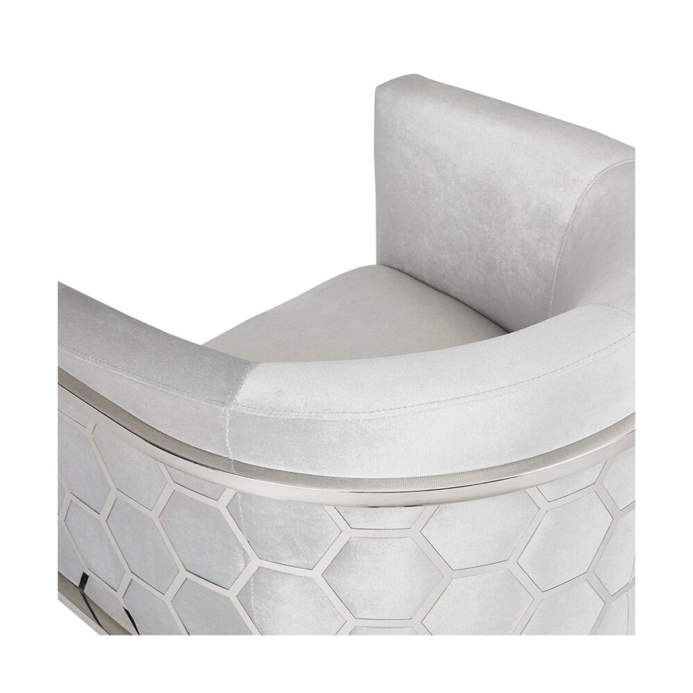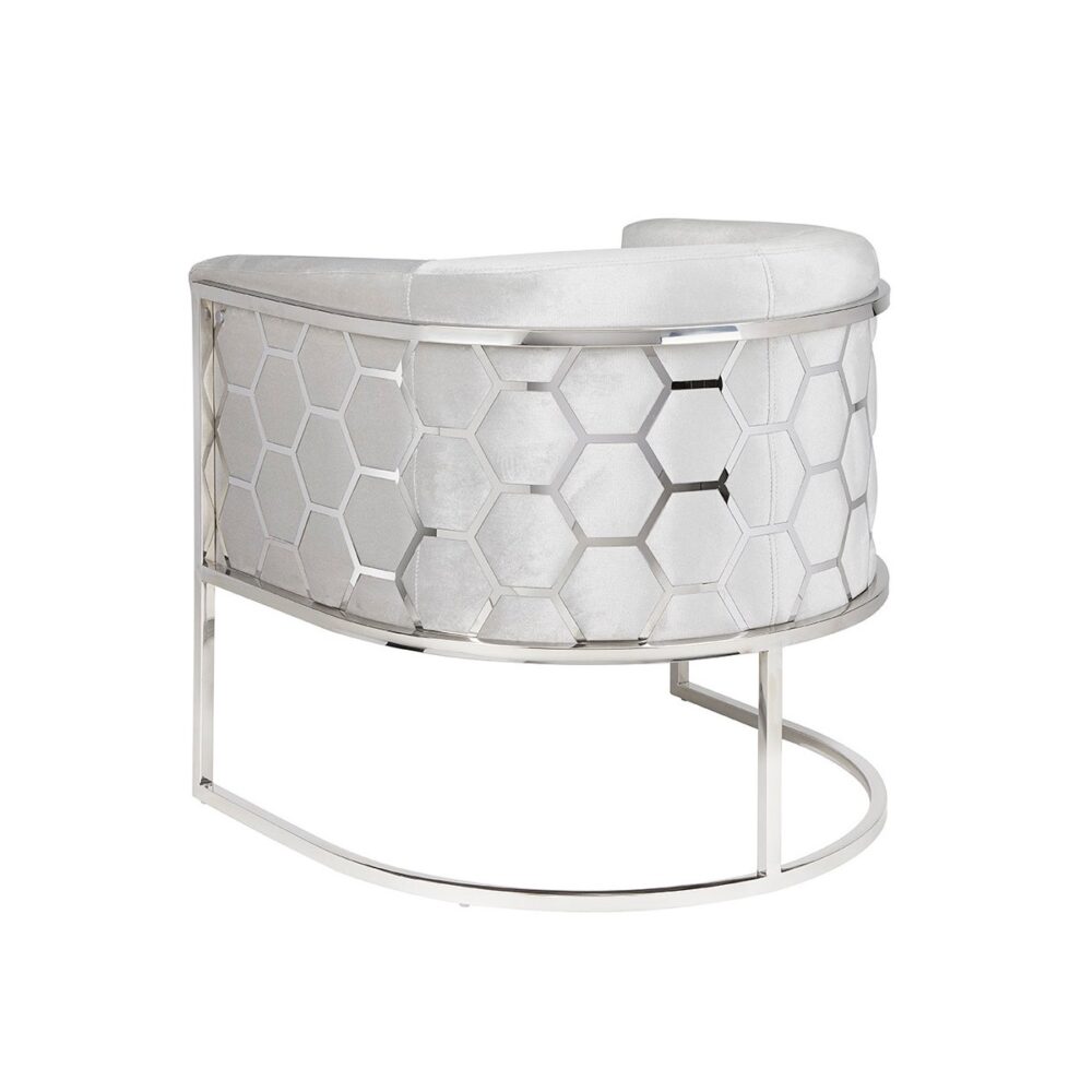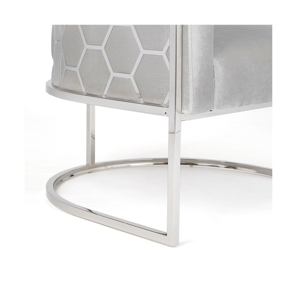 Honeycomb Accent Chair Grey velvet, Polished steel frame