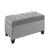 Enjoy additional seating, surface and storage space with this versatile tufted storage ottoman. With a generously padded top, this ottoman adds convenient extra seating for guests and can serve as a comfortable place for putting on footwear at the end of a bed or in an entryway. With a sturdy surface area, this ottoman can also serve as a tabletop in a living room or family room. Ample interior storage space lets you tuck pillows, blankets, slippers and other items neatly out of sight.