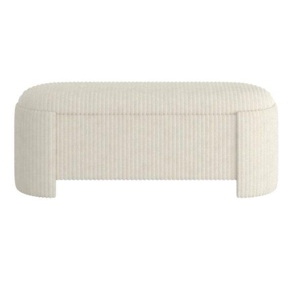 Multifunctional and just so gorgeous to look at! This fully upholstered storage ottoman is the perfect modern contemporary piece to fill your space. Whether you’re looking for a storage bench for the end of the bed, or sit-for-shoes bench in the hallway, or a comfy place to kick your feet up in the living room, this curvy beauty will satisfy all those needs. The upholstery is a soft, textured chenille-like fabric with channelling detail – looks and feels luxurious!