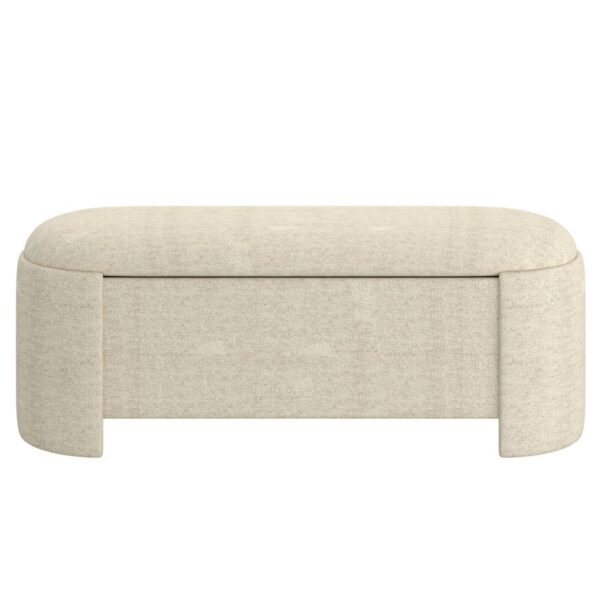 Multifunctional and just so gorgeous to look at! This fully upholstered storage ottoman is the perfect modern contemporary piece to fill your space. Whether you’re looking for a storage bench for the end of the bed, or sit-for-shoes bench in the hallway, or a comfy place to kick your feet up in the living room, this curvy beauty will satisfy all those needs. The upholstery is a soft, textured chenille-like fabric – looks and feels luxurious!