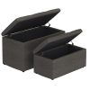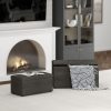 Two large capacity rectangular storage ottomans, one nesting neatly inside the other – convenience at its best! Keep the smaller stashed away for when you need extra bench seating or keep both pieces out and take advantage of places to stash games and blankets. Soft close lids are safe for little fingers, and neutral fabric upholstery will allow for an easy additional to any decor space. Spilt them up or use together as needed.