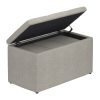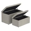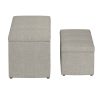 Two large capacity rectangular storage ottomans, one nesting neatly inside the other – convenience at its best! Keep the smaller stashed away for when you need extra bench seating or keep both pieces out and take advantage of places to stash games and blankets. Soft close lids are safe for little fingers, and neutral fabric upholstery will allow for an easy additional to any decor space. Spilt them up or use together as needed.