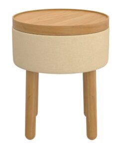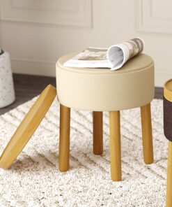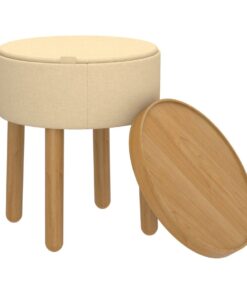 Great things come in small packages and this round storage ottoman is no exception. The versatility is unmatched – storage for when you want to stash your knick knacks, removable tray for when you want to serve drinks, sturdy wooden legs for when you need an extra seat or a place to kick up your feet. Use alone or cluster several pieces together to create your own look.