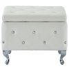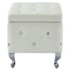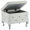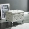 A storage ottoman can be a lavish touch to any home decor ensemble, but this ottoman is truly a one of a kind statement piece. With faux leather upholstery, a beautiful diamond patterned stitching detail, and sparkling crystal button tufting, you’ll think this piece came straight off of a fashion runway. Add to it the cabriole style legs with a chrome finish and this ottoman is sure to dazzle from any angle. Attention to detail is in all of the finishes as it includes a deep multi-purpose storage compartment and safety stop hinges to ensure that closing this ottoman will feel as soft and luxurious as it looks. Whether using it for storage or plush seating, this ottoman is sure to turn any ordinary room into something palatial. Perfect for near the door to add some bling to your entryway. Or place a clear tray on top and use as an elegant accent table.