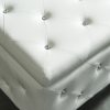 - Diamond-patterned, crystal button tufting on faux leather upholstery