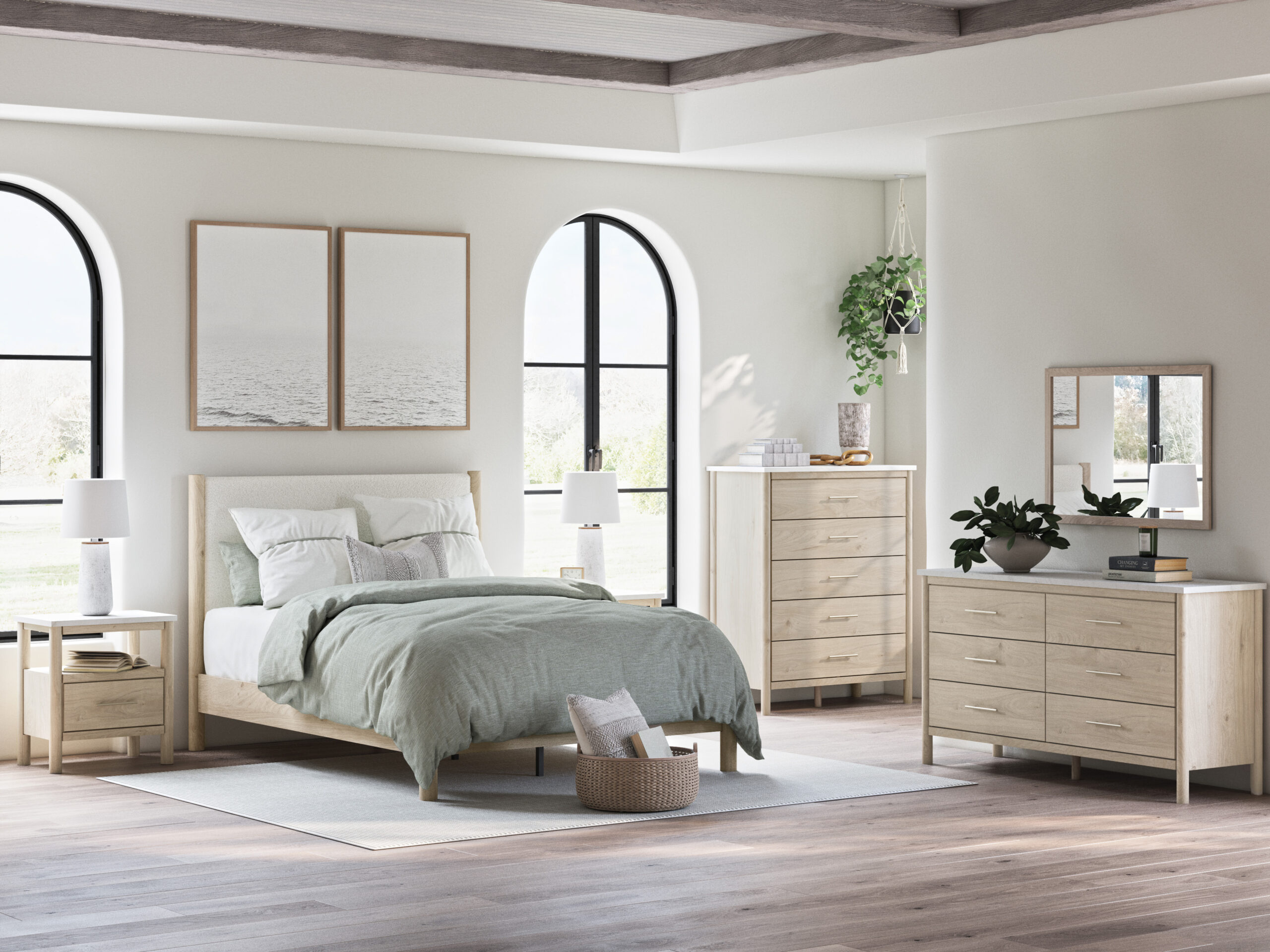 Transform your bedroom with this package. With its clean lines and a fresh, light finish, it exudes a minimal and sophisticated boho style. Tailor your space and create the perfect environment for sweet dreams.