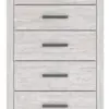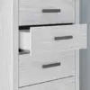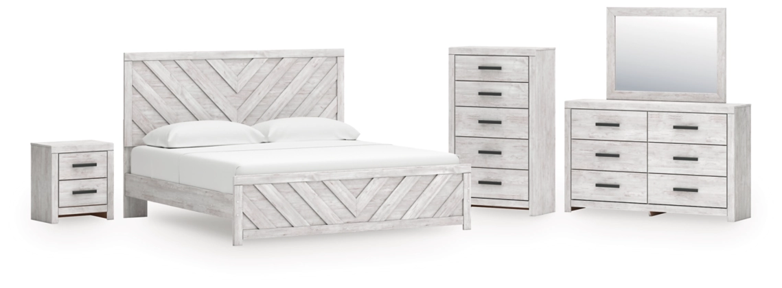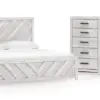 Charmingly designed, this bedroom package embraces the aesthetics of countryside living and repurposes them for modern settings. Its whitewash paint, replicating the wear and tear of time, appeals to your love of vintage character.