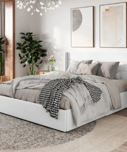 | T2160W-D | 54″ Platform Storage Bed | 58″W 80″D 45″H | Linen Fabric | White |