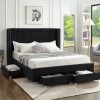 Black Velvet Fabric Wing Bed with Nailhead Details and Chrome Legs.