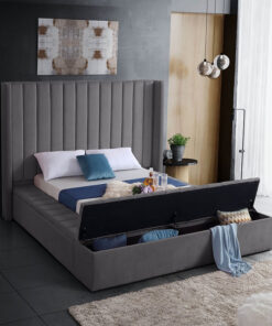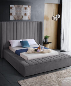 Grey Velvet Fabric Bed with channel tufting and 3 Storage Benches