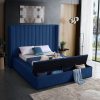Blue Velvet Fabric Bed with channel tufting and 3 Storage Benches