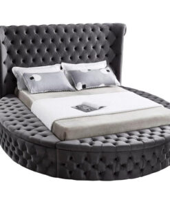 Grey Velvet Fabric Bed with Deep Button Tufting and 3 Storage Benches