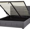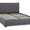 Awake or asleep, you love to enjoy the finer things in life. This panel-style king-size bed is wrapped in rich grey polyester fabric that features a lightly tufted design. It has a modern shape is clean and refined, and combines comfort and style effortlessly. Low, splayed legs raise the platform slightly while allowing the contemporary appeal to shine through. A full slat system provides the support needed for your mattress, which means you can finally say goodbye to that old box spring. Easy access lift storage offers ample space to keep all your sleeping essentials neatly organized and within reach.