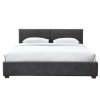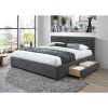 Conquer your bedroom clutter with this modern upholstered bed. The soft fabric lends a sophisticated look to the clean-lined bed design, complete with platform slats that provide plenty of support and let you skip the box spring. The spacious drawers – one of each side of the bed – roll out easily on castors so you can stash and store anything from seasonal clothes, to extra bedding, to that ever-growing shoe collection. Perfect for the Master bedroom, guest room, or for extra storage space at the cottage.
