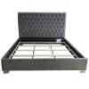 - Diamond patterned button tufting on headboard with polished stainless steel frame