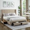 Beige Fabric Wing Bed with Nailhead Details and Chrome Legs.