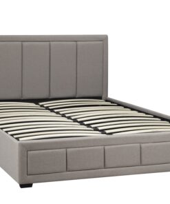 Awake or asleep, you love to enjoy the finer things in life. This panel-style queen-size bed is wrapped in rich beige polyester fabric that features a lightly tufted design. It has a modern shape is clean and refined, and combines comfort and style effortlessly. Low, splayed legs raise the platform slightly while allowing the contemporary appeal to shine through. A full slat system provides the support needed for your mattress, which means you can finally say goodbye to that old box spring. Easy access lift storage offers ample space to keep all your sleeping essentials neatly organized and within reach