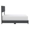 - Textured fabric upholstery with square tufted headboard