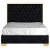 - Diamond patterned button tufting on headboard with polished stainless steel frame