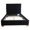 Bring a high-end look to your bedroom with this velvet and stainless steel upholstered bed. Everything from the button tufting on the plush upholstery to the polished metal legs screams style! Perfect for a master bedroom that you will fall in love with.