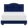 Beautiful and elegant styling on this modern upholstered bed-in-a-box. The sturdy slats and support legs create a solid foundation for your box spring and mattress. Button tufting and nail head detailing on the crown-shaped headboard lend an elegant air of high-end design. A perfect piece for a principle bedroom or child’s room.