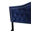 - Crown-shaped headboard with button tufting and nail head detail