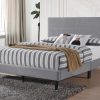Create a sleek and contemporary sleeping sanctuary with our platform bed, designed for both style and versatility. Featuring a distinctive rectangular headboard with accent stitching, this bed offers a chic focal point for any bedroom. Available in your choice of black leatherette or grey linen fabric, you can effortlessly tailor the look to match your personal design aesthetic. With an adjustable headboard and no need for a box spring, this bed combines modern style with practical function.