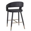 Comfort and style come together to make a statement in your space. This modern counter height stool features a curved high back to offer support for hours hanging out at the kitchen island. The black on black faux leather and metal base combination is a fabulous contemporary touch and will work to modernize any style room. Use as everyday seating in kitchens or more formal bar settings.