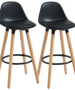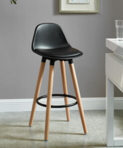 Contoured and comfortable, this counter-height stool is an easy addition to your casual kitchen counter. The plastic seat back is easy to wipe clean while the faux leather cushion adds some comfort when you’re seated for the long-haul. The solid wood legs, with their natural wood finish, provide a clean, A-line design that looks as pretty as it is functional for greater support.