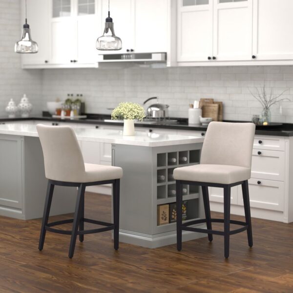 High back stools are all the rage and we can see why! The contoured back on this beauty of a counter stool will provide hours of seated support while the clean lines will make a style statement in any contemporary or transitional space. The soft fabric upholstery is easy to wipe clean and the neutral colour palette will blend seamlessly with your preferred design style.