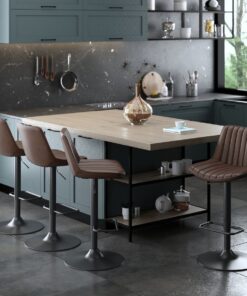 The kitchen island is often the centre hub of any home and this adjustable counter stool will cement that status. The modern profile will fit with any décor style and the subtle countered seat and back will provide hours of comfort. The vertical tufting adds an extra style element with the vintage faux leather upholstery. Also great for a more formal bar setting.