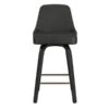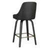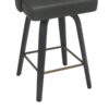 The contoured back on this beauty of a counter stool will provide hours of seated support. The bentwood legs are beautifully finished in black and the cushioning is all upholstered in a vintage charcoal faux leather – creating the perfect modern mid-century piece. The footrest is finished in dull aged gold and provides additional comfort. Full swivel allows for ease of use at any counter space.