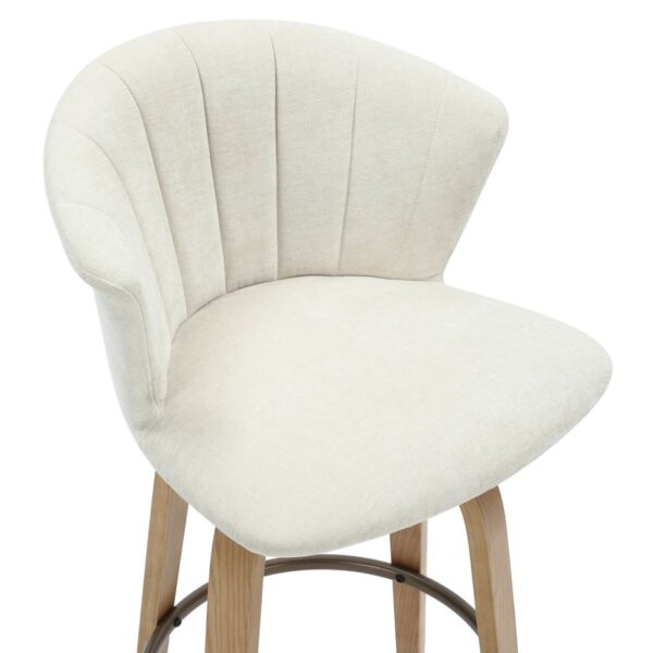When the best of mid-century modern design is integrated perfectly into the current design world, you get gorgeous pieces like this stool. The bentwood frame and legs are beautifully finished in a natural wood finish, and the cushioning is all upholstered in a soft textured fabric – creating the perfect modern mid-century piece. The footrest is finished in dull aged gold and provides additional comfort. Full swivel allows for ease of use at any counter space.